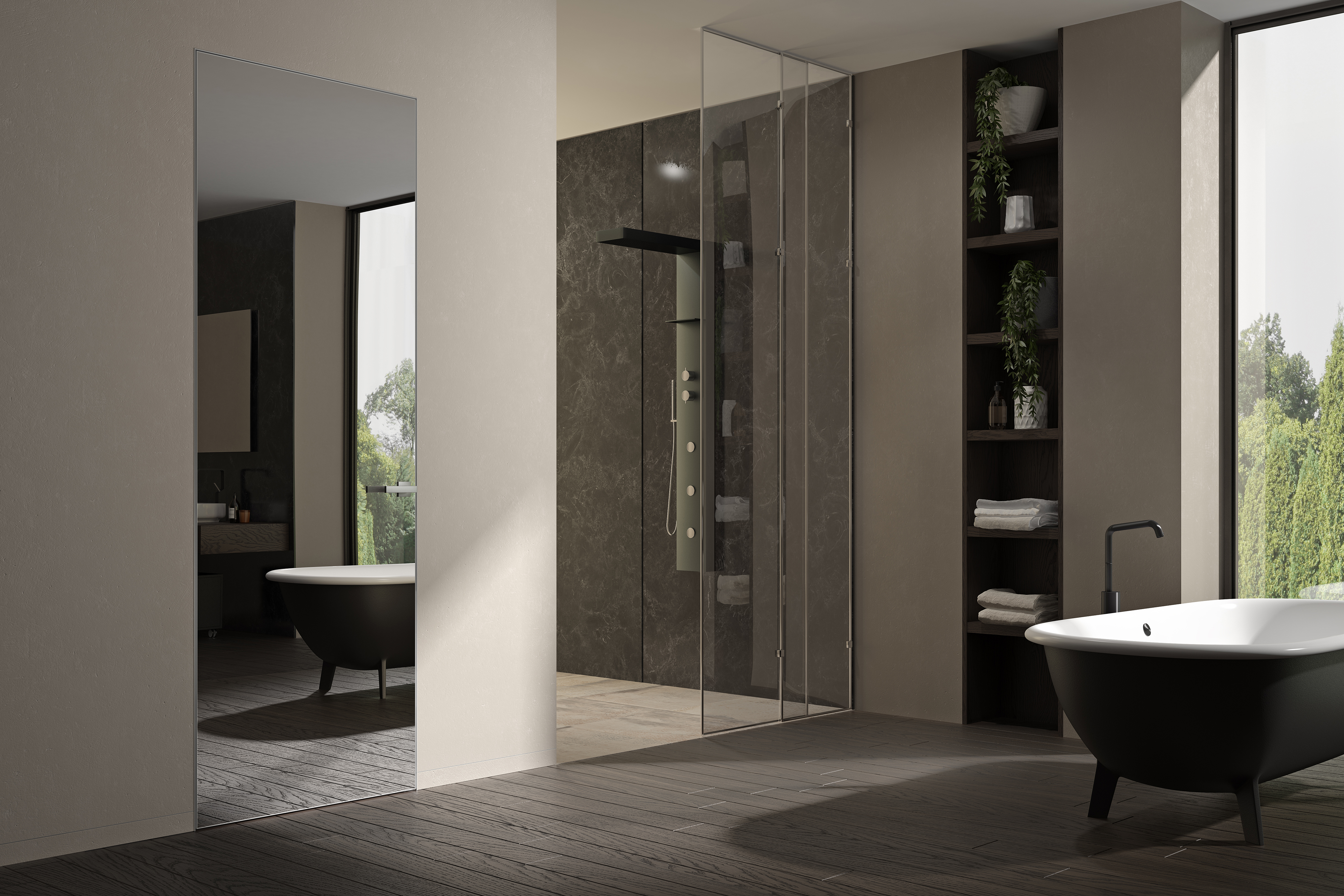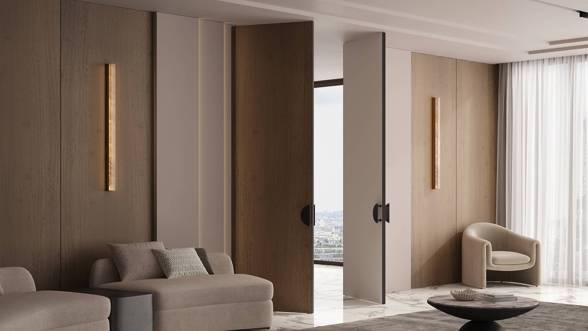 Двери с алюминиевой кромкой Planum Pro — гладкое зеркальное полотно позволяет максимально раскрыть красоту выбранной отделки, поэтому пользуется большой популярностью у дизайнеров, как и новая возможность выбора цвета алюминиевой кромки и скрытого короба. Полотна Planum Pro могут быть изготовлены во всех отделках из ассортимента Волховец и прекрасно сочетаются с нашими стеновыми панелями.